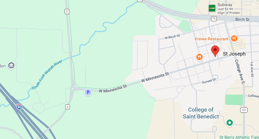 From Interstate 94 Westbound: Take Exit 160 (Hwy 2), taking a right turn toward St. Joseph. At the traffic circle, follow W. Minnesota Street until you reach 1st Ave NW (approximately eight tenths of a mile). The Post is located on the left at that corner.